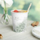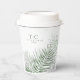 A trendy colour palette in shades from soft tea and moss to dark hunter green; sparkling geometric frames and elegant design layouts, provide the basis for this exciting wedding suite. Whether you're planning a destination wedding or staying close to home, this delicate palm leaf design set makes an eye-catching choice. The coordinating paper cup shown here on a white background, provides a template to easily add your initials, names and wedding date. Search ID956 to see other pieces and colour choices for this set.