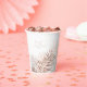 A trendy colour palette in shades of terra cotta, copper and rust; sparkling geometric frames and elegant design layouts, provide the basis for this exciting wedding suite. Whether you're planning a destination wedding or staying close to home, this delicate palm leaf design set makes an eye-catching choice. The coordinating paper cup shown here on a white background, provides a template to easily add your initials, names and wedding date. Search ID956 to see other pieces and colour choices for this set.