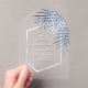 A trendy colour palette in shades from steel grey to windsor blue; sparkling geometric frames and elegant design layouts, provide the basis for this exciting wedding suite. Whether you're planning a destination wedding or staying close to home, this delicate palm leaf design set makes an eye-catching choice. The transparent, arch-shaped acrylic wedding 'Invitation' card shown here features a palm leaf border and gradient frame with a template to add all your event details. Search ID956 to see other pieces and colour choices for this set.