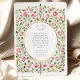 Step into an enchanted garden with this breathtakingly romantic wedding invitation. Inspired by the timeless beauty of the Arts and Crafts movement, this design features an intricate and lush watercolor border of delicate pink roses, buds, and gracefully weaving green vines. The dense, symmetrical pattern creates a magical tapestry reminiscent of a classic fairytale. A simple, elegant circular frame in a soft olive hue provides a perfect window for your personalised wedding details, which are displayed in a sophisticated mix of classic and script fonts. This invitation is an exquisite choice for a romantic garden, vintage, or fairytale-themed wedding, setting a tone of enduring elegance and beauty for your special day.