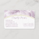 This personalised business card features lush, tropical pink ferns over an arch. Your name, company or business name, profession or title, phone, social media site, icons, email, and website address can be easily entered with the template. Change the text and fonts to a style and colour of your choice.