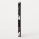 A vibrant phone case design featuring a rich black background adorned with lush tropical flowers and leaves. The composition showcases white blooms with intricate details, complemented by deep green and burgundy foliage.