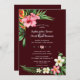 Lush Tropical Garden Flowers Deep Burgundy Wedding Invitation