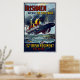 Digitally restored poster depicting the Lusitania ship sinking in flames, with people in the water and lifeboats in foreground. British army World war 1 enlistment poster issued in 1915 by the Council for the Organization of Recruiting in Ireland.