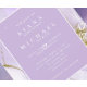 This custom design featuring an alcohol ink abstract in shades from soft lavender to lilac purple with glittering gold accents, is perfect for a romantic and elegant wedding theme. The wedding invitation shown here provides a template to easily add your own names, wedding date and event details. Search ID990 to see other pieces in this coordinated wedding set.