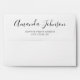 A 5x7 envelope featuring a blue and gold alcohol ink or abstract watercolor paint design as the inner lining and a customise-able return address section on the back flap.