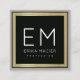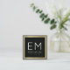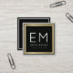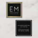 A monogrammed design for elegant professionals, with name or business name and initials on a black square background with faux gold border