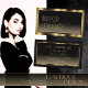 Make a lasting impression with this elegant and luxurious business card design featuring a shimmery dark gold frame and fine decor stripes with a modern black gradient background.