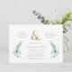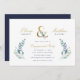 Affordable custom printed wedding engagement party invitations personalised with your event details. This elegant design features a faux gold foil ampersand with delicate blue and green watercolor greenery on a white background. Use the design tools to customise the text, edit the fonts and colours or add your own photos to create a classy and stylish party invitation.