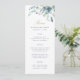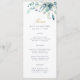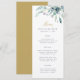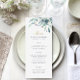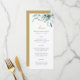 Custom printed wedding menu cards. Use the design tools to personalise the layout, background colours and text with your wedding menu details. This elegant design features a watercolor floral border of succulent greenery and blooms with gold and navy text.