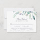 Affordable custom printed wedding RSVP cards with simple boho watercolor greenery. Personalise the design with your wedding RSVP info and meal options for guests. Use the design tools to customise the text, choose any background colour and edit the fonts and colours to create your own unique wedding reply card design. Reverse side features a navy blue background or use the space to add additional text or photos if needed. This beautiful modern botanical design is perfect for any season.