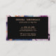 Modern, girly elegant networking card featuring digital image of liquid marble print in shades of blue, pink, purple gold and rose gold. Black stripe overlay. Great for beauty, fashion , entertainment and event professionals.