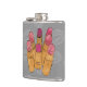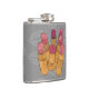 The flask itself is fine. It’s a cheap flask, obviously bought in bulk, however am prepared to overlook that. Given that it is a personalized item, I would have liked to have seen gift boxing instead of the generic packaging. Terrible printing, and/or quality. It’s a cheap, tacky vinyl. It is not cut straight and is also applied in a way that it is overhanging the bottom, causing the glue to catch on items and it will eventually roll and tear, damaging the wrap.
