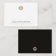 Make a lasting impression with these note cards featuring an elegant modern luxury dual-sided design. The front features a simple clean white background with a pre-made gold diamond logo and company name, tagline or custom text in black and golden classic serif typography. The back features a solid black background with a smaller distinguished logo. Ideal for sending personalised messages and thank-you notes to clients.