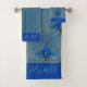 Luxe Monogram Turquoise Teal Blue Peacock Pattern Bath Towel Set
