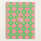 Elegant Pink & Green Harlequin Monogram Planner – Gold Crest Design, Custom Initials, Stylish Patterned Cover