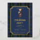 This blue tartan party invitation has a cute preppy bear holding a gift. All the party details and the notched frame are in gold foil. The back features a coordinating blue tartan pattern.