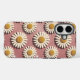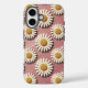 This is a Luxe Retro White Daisies iPhone 16 Case. The design is a generative art design with luxe retro vintage groovy daisies design. The art features white daisies with yellow centres on a luxe pink glitter background with a glittery effect. You can add a name or change the image with the Personalise button.