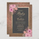 Celebrate your special day with our elegant and modern baby shower invitation, designed for a classy and stylish event. The invitation showcases hand-painted pink, coral, brown, and orange watercolor flowers and leaves corner arrangements. These details are elegantly placed on top of a faux printed gold foil frame, complemented by a sparkly deep gold glitter border set against a chic black background. This chic, luxe, pretty, and unique design is the perfect choice to set the tone for your memorable occasion.