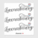 Scripted font design custom kiss-cut stickers (3 on a sheet).