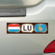 Bumper sticker displaying an attractive combination of the Luxembourg flag, map and 2 letter country code.