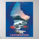 Luxembourg European map travel poster featuring a river and a small sea prop plane.
