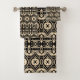 Elevate your bathroom decor with these luxurious black and gold patterned bath towels. The intricate design complements a sophisticated, stylish atmosphere and pairs beautifully with modern bathroom settings.