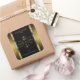 Make a lasting impression with this luxury and modern product label design featuring shimmering gold ornaments on a black background with golden glitter borders.