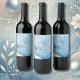 This wedding wine label features a luxurious blue watercolor background with soft pearlescent wave textures, creating a dreamy and elegant aesthetic. The blend of dusky aqua tones and subtle white accents evokes a serene, ocean-inspired feel. Fluid marble-like details add depth and sophistication, making it perfect for a modern, artistic, and whimsical wedding theme. The overall look is timeless yet contemporary, ideal for those who appreciate refined, coastal-inspired artistry.