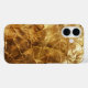 This image showcases a smartphone case featuring a luxurious gold foil texture. The design mimics the appearance of crumpled metallic gold leaf, giving it a rich and elegant look. The texture has an intricate pattern of creases and folds, reflecting light in different directions, creating a shimmering effect. The case is designed for an iPhone, evident from the dual-camera cutout and sleek form. This stylish accessory combines sophistication with a modern aesthetic, making it a perfect choice for those who appreciate a premium and eye-catching design.