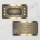 Luxurious golden business card design featuring an oval shape, gold borders and shimmery diamonds.
