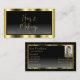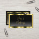 Make a lasting impression with this elegant and luxurious business card design featuring a shimmery golden frame and fine gold decor stripes with a modern black gradient background.