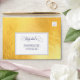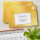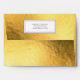 Luxurious Golden Wedding envelope with a deluxe red and purple abstract art interior. Jewel tones of amethyst and ruby with an accent of rich gold in swirls of liquid colour. Sitting atop the gold is an easy to edit template; to which an address can be added OR remove the template text to leave the area blank, then an address label could be added to the front of the envelope. Luxurious Golden Custom Address Wedding Envelope. Original abstract art by international artist Pauline Benjes.