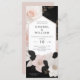 Elegant Chanel-inspired wedding invitation featuring blush pink simulated bejeweled flowers and foliage with chic black accents. Creating a blend of sophistication, luxury and romance.