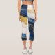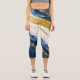 Luxurious Navy Blue & Gold Leaf Marble Capri Leggings