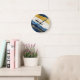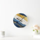 Luxurious Navy Blue & Gold Leaf Marble Round Clock