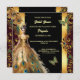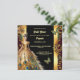 A beautiful, vibrant and luxurious design featuring a black background on which vertical faux gold bands appear with decorative golden swirls and peacock feathers. Small butterflies are flitting around and a stunning woman wearing a magical faux gold off the shoulder bodice and skirt adorned with majestic peacock feathers appears on the left edge. Pale golden text templates appear to her right for your personalised wording. The back has the same design, sans the lady, and additional templates for extra information you may want your guests and family to know. If not required, delete the wording to leave them blank. This stylish, elegant and traditional design is ideal for any Hindi or Hindu ceremony. Spoil the bride to be with this ethnic asian upmarket, luxurious and bespoke square invitation