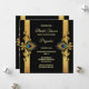 A beautiful, vibrant and luxurious design featuring vertical faux gold bands on either edge of this square invitation on which peacock feathers and decorative floral flourish swirls appear. The feathers are resting against a black background that has pale golden text templates on it. The back has the same design and additional templates for extra information you may want your guests and family to know. If not required, simply delete the wording to leave them blank. This stylish, elegant and upmarket design is ideal for any bridal shower; anniversary; birthday or engagement. Spoil the bride to be with this ethnic asian upmarket, luxurious and bespoke square invitation