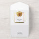 This plain but striking gold and white all-in-one wedding invitations features majestic golden peacock statues. The front flap that has your guests name and address on it is framed by a square faux gold frame on which a regal peacock rests with its plumes open wide. On opening the top flap you are greeted with a luxurious peacock framed by a rectangular gold border and the bottom rsvp tear-off section; has another luxurious golden peacock plus details for your guests name; food selection and no of pax attending. This minimalist design has a timeless and classic look and feel and is ideal for a "peacock theme" wedding; a "feathers and peacocks" wedding anniversary or a formal and elegant business function. Simply personalise the templates to suit your special occasion.