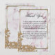 You can show your appreciation and thank your family and friends for their support and love on your wedding day with this elegant gold pearls and pink marble wedding thank you card. The design consists of a classically elegant pink marble pattern, framed in a gold metallic border with pearls in the corners. There is a decorative lace corner of flowers and petals which is also embedded with tiny pearls at the bottom.