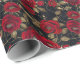 Luxurious Red Rose & Gold Leaf Pattern on Black Wrapping Paper
