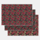 Luxurious Red Rose & Gold Leaf Pattern on Black Wrapping Paper Sheet