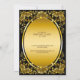 Luxurious invitation with a black background and a gold frame engraved with flowers and leaves. This elegant, regal wedding invitation template is perfect for inviting guests. Simply enter your event details into this template to create a one-of-a-kind invitation.