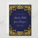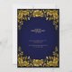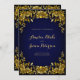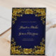 Luxurious invitation with a royal blue background and a gold frame carved with flowers and leaves. This elegant, regal wedding invitation template is perfect for inviting guests. Simply enter your event details into this template to create a one-of-a-kind invitation.
