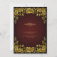 Luxurious invitation with a burgundy background and a gold frame carved with flowers and leaves. This elegant, regal wedding invitation template is perfect for inviting guests. Simply enter your event details into this template to create a one-of-a-kind invitation.