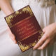 Luxurious invitation with a burgundy background and victorian style gold frame. This classy regal wedding invitation template is ideal for inviting your guests. Simply personalise your event information and photo into this template to create a one-of-a-kind invitation.