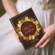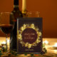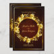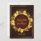 Luxurious invitation with a dark red background and a gold frame engraved with flowers and laurel leaves. This elegant, regal wedding invitation template is perfect for inviting guests. Simply enter your event details into this template to create a one-of-a-kind invitation.