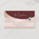Luxurious and elegant business card design featuring rose gold colours decoration with a glamourous sparkling diamond and wine red background.