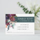 A wonderfully luxurious wedding RSVP card with a sumptuous bouquet in painted watercolor hues of dark wine, eggplant purple, burnt orange, marsala red, deepest rose pink, beige, teal and green. A matching band of colour in rich teal forms the background to highlight your required response date. The look is contemporary and artistically elegant. Personalise the text template with your RSVP date.