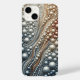 Experience a symphony of texture and color with this stunning luxury phone case. The design showcases an intricate 3D mosaic of glistening pearls and iridescent beads, flowing in a graceful, organic stream. The palette transitions beautifully from cool, starlit blues and silvers to warm, radiant copper